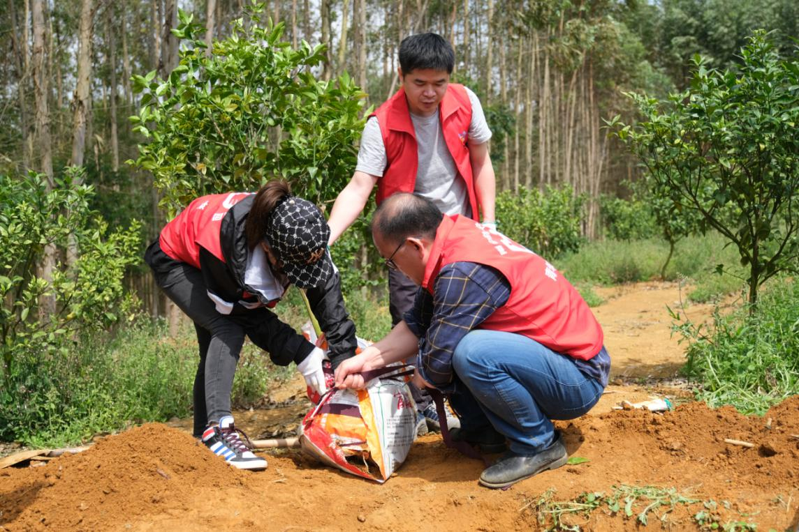植樹活動現(xiàn)場,汗水夾雜著歡笑,黨旗在迎風(fēng)飄揚,呈現(xiàn)出一派熱火朝天的勞動景象。黨員志愿者們熱情洋溢,個個干勁十足,充分發(fā)揚了團結(jié)、互助、有愛的團隊精神,在農(nóng)場專業(yè)人員的指導(dǎo)下,大家揮鍬鏟土、挖坑起苗、捆扎遷移、扶苗培土、提桶澆水,各環(huán)節(jié)銜接有序、配合默契,齊心合力協(xié)助農(nóng)場進行了果樹移植。一株株樹苗迎風(fēng)挺立,盡顯傲然春意,見證著第三黨支部黨員志愿者們心連心的深厚情誼,播撒了民族團結(jié)的種子,播種了春天的希望。