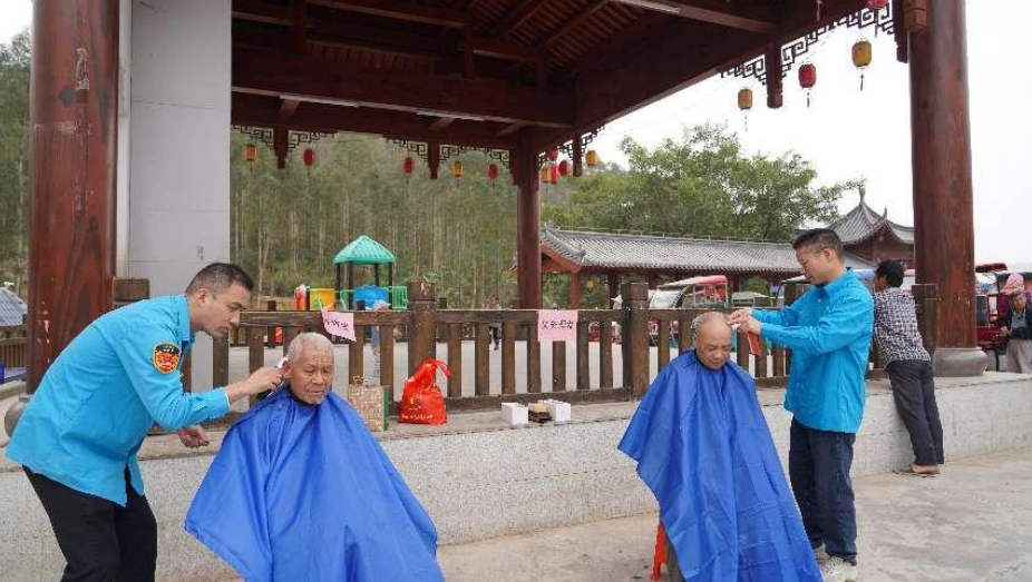 ▲運(yùn)營公司團(tuán)委、南寧公交團(tuán)委青年志愿者為社區(qū)居民義務(wù)理發(fā)