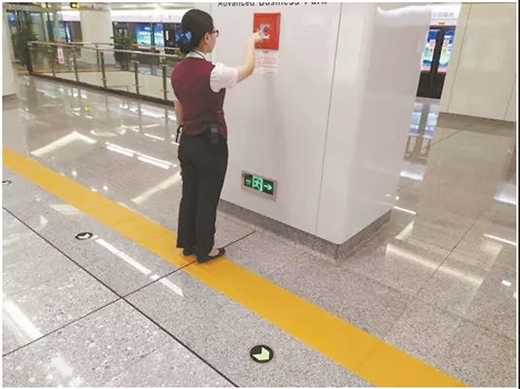 而在站臺的乘客則應(yīng)立即招呼車站工作人員尋求幫助,或者按壓緊急停車按鈕,該按鈕設(shè)置在站臺墻上,共4個,緊急情況下乘客可按壓按鈕,車輛會緊急停車。