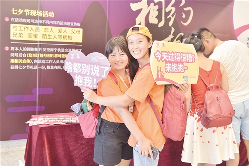 本報(bào)訊(記者 王志鵬 通訊員 唐開凱)昨日,南寧地鐵工作人員以七夕節(jié)為契機(jī),在地鐵朝陽廣場站向路過的市民乘客主動張開手臂,給予溫暖擁抱,并倡導(dǎo)市民乘客,也向身邊人,包括自己的愛人、父母、子女、朋友,甚至需要溫暖安慰的陌生人,給予一個(gè)擁抱,用肢體語言表達(dá)心中的情感,讓他人再次體會到擁抱帶來的溫情與慰藉。