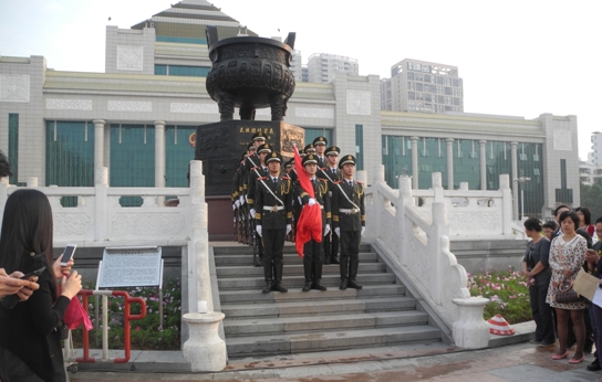 7點(diǎn)10分,在《歌唱祖國》激揚(yáng)的旋律中,項(xiàng)目經(jīng)理部50名參建人員身著藍(lán)色工作服,頭戴黃色安全帽紛紛來到南寧市民族廣場旗臺前集合,并在統(tǒng)一安排下整齊列隊(duì)等待。7點(diǎn)30分,在雄壯嘹亮的國歌聲中,3名英姿颯爽的年輕護(hù)旗手有節(jié)奏的拉著手中的升旗線,國旗在大家莊嚴(yán)而神圣的注目禮中,在南寧市民族廣場冉冉升起,在陣陣晨風(fēng)中高高飄揚(yáng)。此時,全體員工行注目禮,凝視著徐徐升起的五星紅旗,激動與自豪寫滿了臉龐。大家用深情的目光,滿腔的喜悅,祝福偉大祖國更加繁榮昌盛,祝福中鐵二局的明天更加美好。