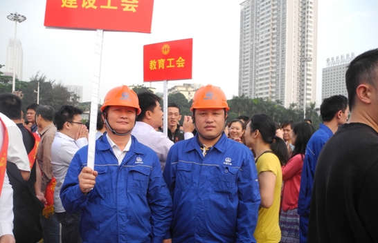5月1日清晨,當(dāng)陽光灑落在祖國南方之際,南寧地鐵1號線新民路站、民族廣場站項(xiàng)目部50名員工應(yīng)南寧市工會邀請代表施工建設(shè)單位參加南寧市2014年“五一節(jié)”升國旗儀式。