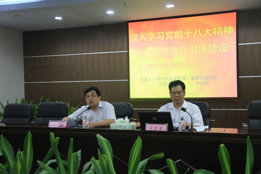 盧局長(zhǎng)又從同志們?cè)谌粘9ぷ髦?、生活中?jīng)常遇到的問(wèn)題,以各種生動(dòng)的事例,教育我們要堂堂正正做人,清清白白做官,踏踏實(shí)實(shí)做事,特別在軌道交通建設(shè)中,要秉公用權(quán),陽(yáng)光廉政,將軌道交通1號(hào)線(xiàn)、2號(hào)線(xiàn)及以后的工程,建設(shè)成為優(yōu)質(zhì)工程、廉潔工程,為南寧市經(jīng)濟(jì)社會(huì)實(shí)現(xiàn)跨越式發(fā)展貢獻(xiàn)我們軌道交通人應(yīng)有的力量!