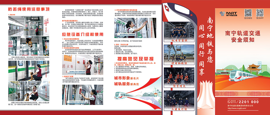 南寧地鐵推出新版的乘車指南,讓您一手掌握各類乘車信息。新版乘車指南采用了分類折頁(yè)的形式,分為《南寧軌道交通文明乘車指南》、《南寧軌道交通票價(jià)及便民指南》、《南寧軌道交通安全須知》。 紙質(zhì)版乘車指南折頁(yè)可在車站隨手取閱