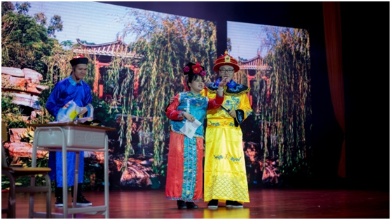 本屆文化藝術(shù)節(jié)節(jié)目豐富多彩,高潮迭起,節(jié)目主要由舞蹈、古裝小品、歌曲、親子朗誦等形式組成,員工在屬于自己的舞臺上,展示藝術(shù)才華,抒寫美好生活。舞蹈《彩云追月》優(yōu)美曼妙,華麗開場;由客運(yùn)員工自行改編、填詞的民謠《南湖南,北湖北》,展現(xiàn)了南寧城市建設(shè)的變遷,訴盡了綠城的綺麗,地鐵的發(fā)展;親子朗誦《讓我們一起成長》配合精心制作的員工家庭合影背景視頻,詮釋了愛是最長情的告白,以此送給所有“舍小家,為大家”的南寧地鐵人,讓現(xiàn)場多位觀眾感動得潸然淚下;由客運(yùn)中心副主任和多位經(jīng)理共同參演的古裝小品《導(dǎo)演來了》幽默詼諧,贏得了觀眾陣陣掌聲,現(xiàn)場笑聲一片;互動魔術(shù)《Fun time》熱鬧有趣,將現(xiàn)場氛圍推到了高潮?;顒悠陂g,還分別對獲得2019年度運(yùn)營分公司客運(yùn)中心“最美車站員工”和“最美安檢員”的個人進(jìn)行了表彰。